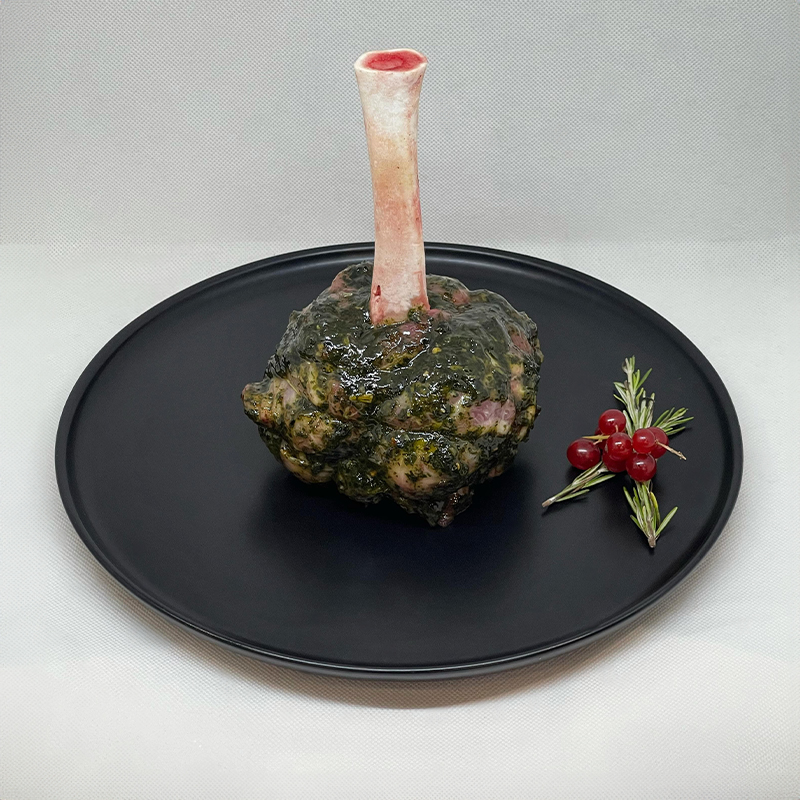 Cette pièce individuelle (comptez une souris par personne) est soigneusement ficelée pour une cuisson uniforme, puis marinée dans un mélange maison d’ail des ours, persillade et herbes fines, offrant une saveur aromatique douce et raffinée.